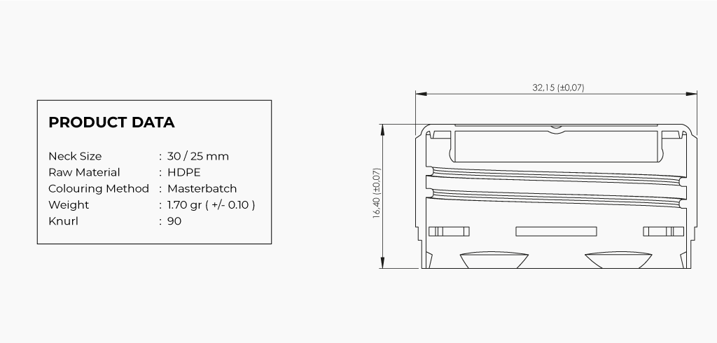 30/25 kapak, enjeksiyon teknolojisiyle üretilen, HDPE organoleptik yapısıyla uyumlu, dayanıklı ve güvenli kapanış sağlayan bir su ve gazsız içecek çözümüdür.